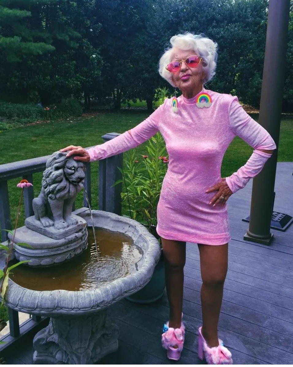 Потому что контраст между молодящимся прикидом и возрастным лицом бьет по глазам сильнее, чем любая седина.