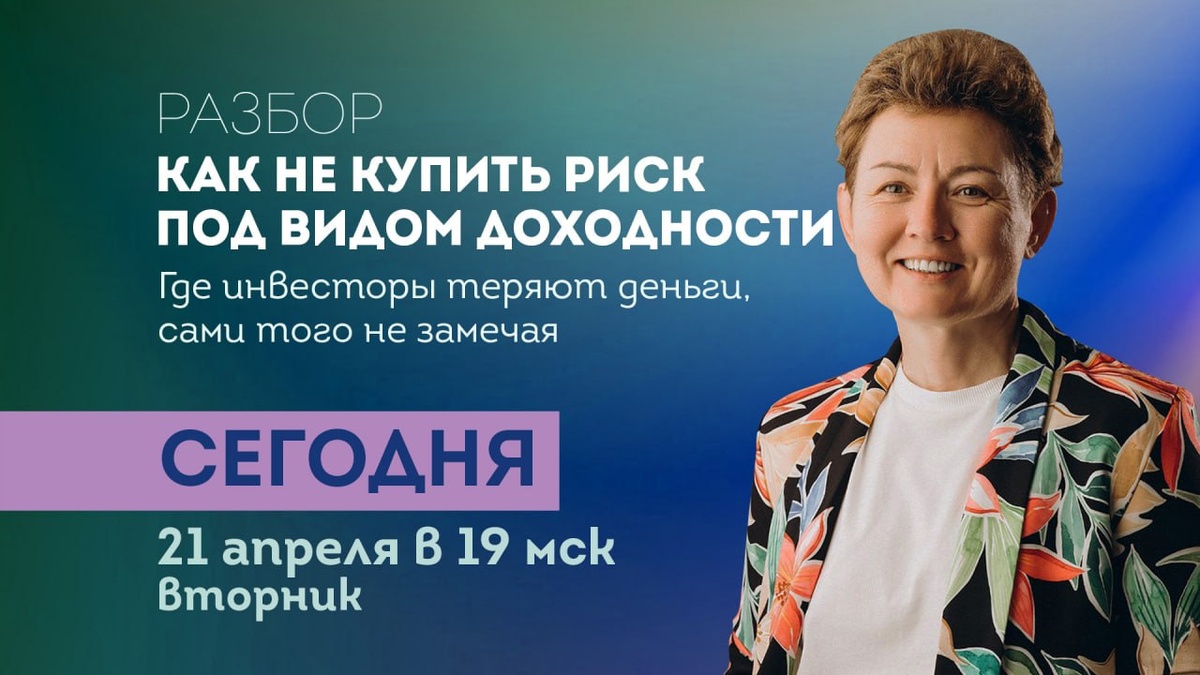 , как не купить риск под видом доходности. Стартуем в 19 мск. 1. Кредитное качество бумаг, как не "попасть" с ВДО 2. Концентрация бумаг, в том числе и неочевидная 3. Несоответствие цели содержанию 4. Валютные риски 5. Горизонт планирования не соответствует содержанию портфеля, как на этом не потерять 6. Налоги Стоимость участия - 2 490 р., запись эфира будет уже завтра после обеда. Если вам актуально, успевайте записаться здесь: https://gcnumberoneschool.ru/notbuyingrisk