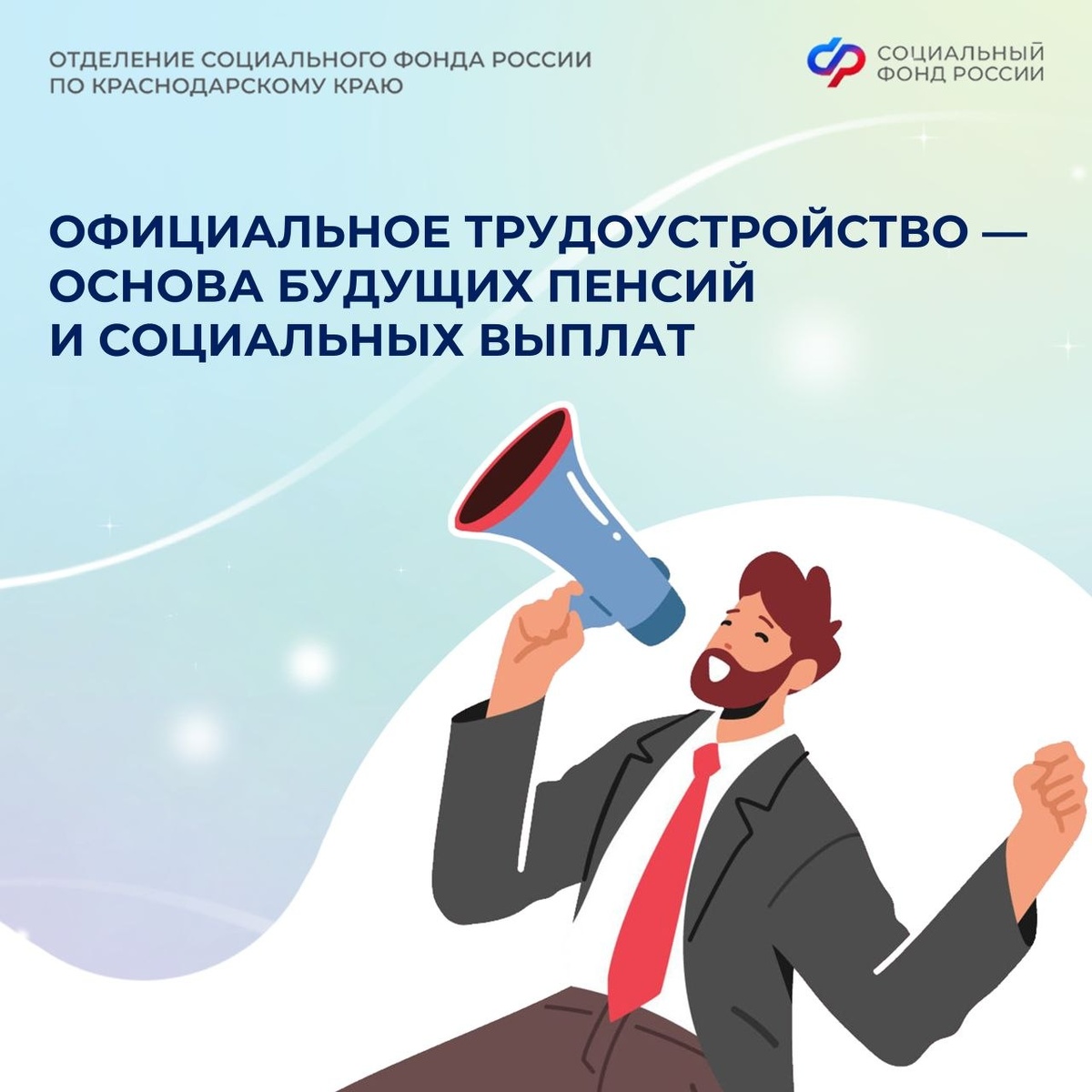 ! 💼😀 Белая зарплата — стабильная пенсия! 😀💼 С 20 по 26 апреля 2026 года в Краснодарском крае проходит Неделя правовой грамотности 🗓! Мероприятия в рамках Недели: 🔵 Круглые столы и обучающие семинары 🔵 Флешмобы и дни открытых дверей 🔵 Адресное консультирование по официальному трудоустройству. Почему важно работать официально? ✔️ Защита прав — соблюдение трудового законодательства. ✔️ Социальные гарантии — достойная пенсия, пособия, поддержка в трудные моменты. ✔️ Преимущества: 🔵Оплата больничных 🔵Декретные и детские пособия 🔵Страховая пенсия по старости ⚠️Осторожно: «серая» и «чёрная» зарплаты! Некоторые работодатели предлагают зарплату «в конверте» 📨 или оформляют на минимальный оклад, чтобы сэкономить на взносах. Но это опасно! 🟡 «Серая» зарплата занижает будущую пенсию — её рассчитывают только с официальной части дохода. 🟡 «Чёрная» зарплата лишает страхового стажа и права на пенсию. В итоге — только социальная пенсия, которая назначается на 5 лет позже и не превыш