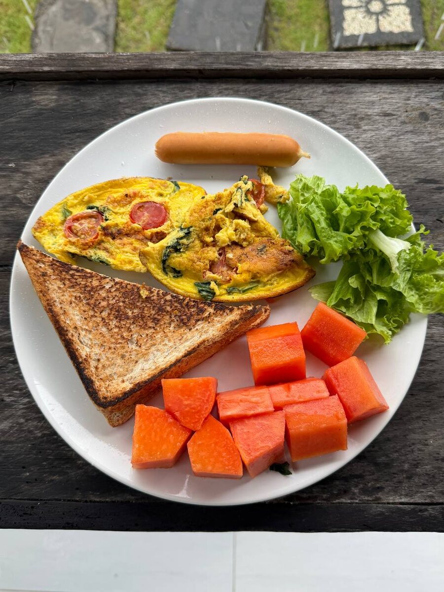 🌸 А у нас сегодня дождь🥲 и завтрак🙂 🍴 Состав: ✅омлет (яйца, молоко, шпинат, помидоры, зелёный лук); ✅тост с моцареллой; ✅сосиска; ✅свежий салат (листья салата); ✅папайя 💯 Почему это полезно? Омлет — белок, витамины группы B, холин (для мозга), антиоксиданты (ликопин из помидоров), железо (из шпината). Тост с моцареллой — сложные углеводы (сытость), кальций и белок. Сосиска — дополнительный белок (выбирайте качественный продукт). Салат — клетчатка для пищеварения, витамины. Папайя — витамины A и C, ферменты для пищеварения. 💡 Почему этот завтрак идеален: 👍баланс белков, жиров, углеводов; 👍разнообразие витаминов и минералов; 👍сытность без перегрузки ЖКТ. 🥗 Твой личный нутрициолог