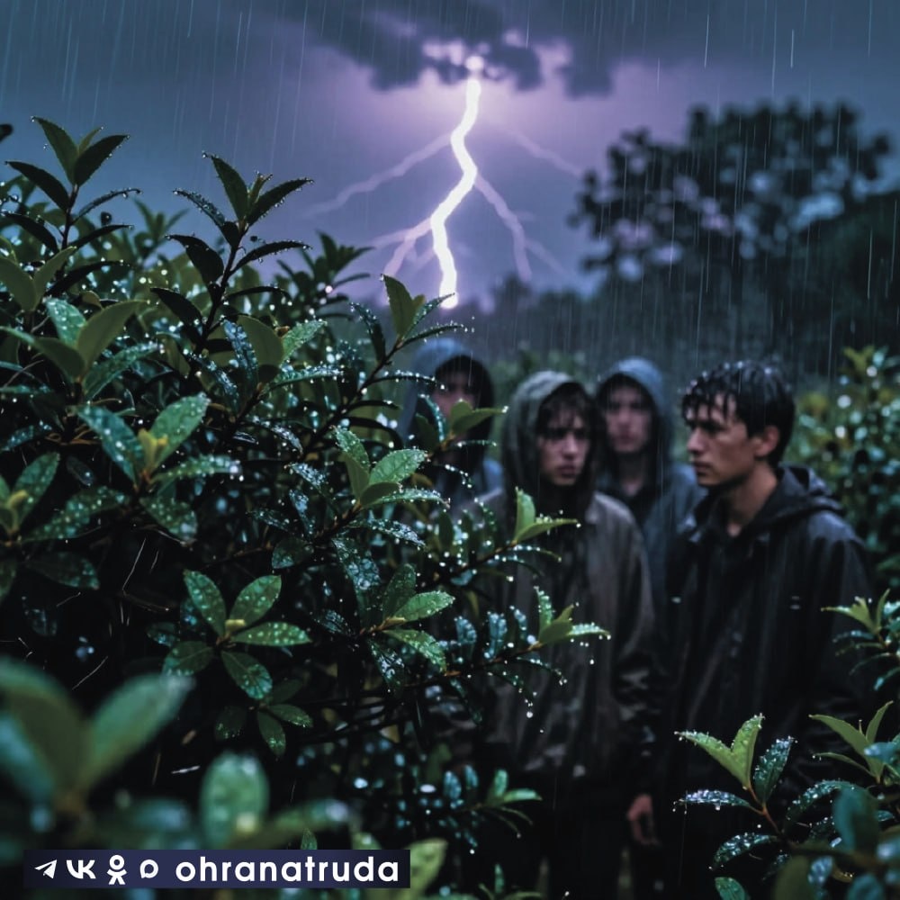 Если организация ведёт работы в лесной зоне, крайне важно обеспечить безопасность сотрудников во время грозы - особенно когда поблизости нет стационарных зданий. 🌳 Руководствуйтесь разделом XLVII Правил по охране труда при выполнении лесохозяйственных работ (утв. приказом Минтруда от 23.09.2020 № 644н). При первых признаках грозы: 🌿 Немедленно остановите все работы. 🌿 Направьте работников в безопасное место - на поляну, склон холма или в зону низкорослых деревьев (расстояние между деревьями - не менее 20 метров). 🍃 По возможности обеспечьте размещение на изолирующем материале (сухом валежнике, бересте). 🍃 Попросите сотрудников, использующих металлические инструменты, сложить инвентарь на расстоянии не менее 10 метров от места укрытия. ⚡️ Что запрещено во время грозы: 🕺находиться в движении; ⛰️ располагаться на вершинах гор и холмов, на опушке леса; 💦 останавливаться у водоёмов; 🌳 прятаться под отдельно стоящими деревьями, скалами, камнями и прислоняться к ним; ⚡️ сто