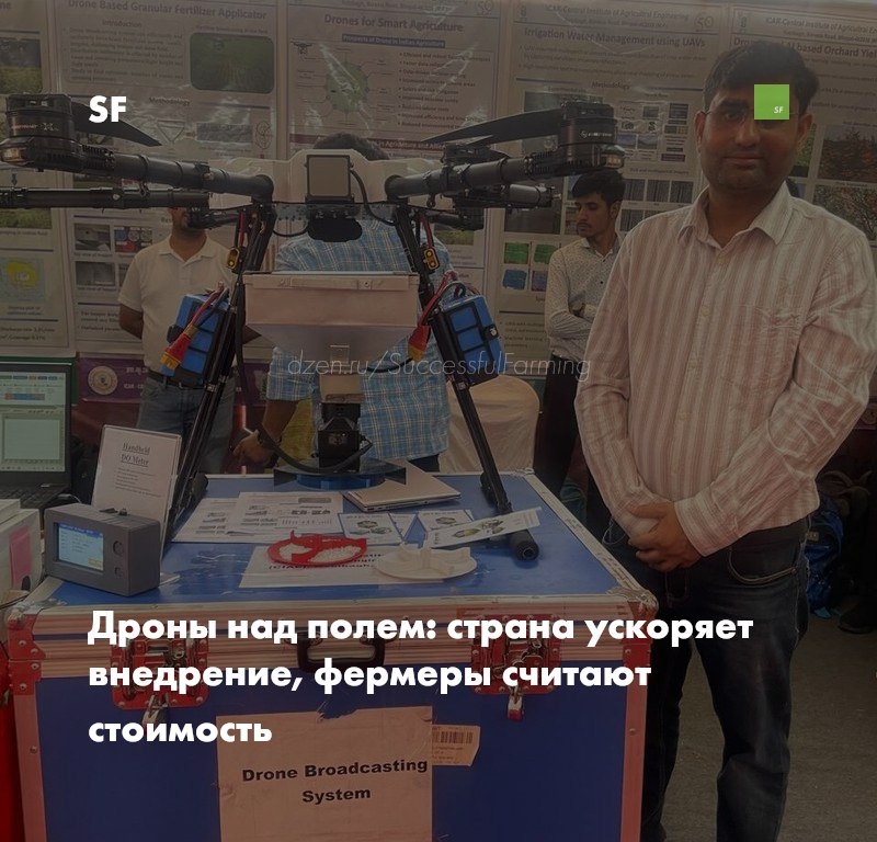 хозяйства. Профильное ведомство продвигает технологию с 2022 года и даёт субсидии по программам поддержки — от 40% до 100% стоимости, но не выше 10 лакхов рупий. Дроны чаще используют для опрыскивания, а новые задачи ещё изучают. В одном профильном научном центре показали «дрон-раскидатель» для равномерного внесения мочевины и съёмки поля сенсорами; на площадке демонстраций на 500 гектарах его показывали бесплатно. Фермеры одного региона берут дроны в аренду, один кооператив сдаёт их по 300 рупий за акр, особенно выручая в дождливый сезон и на высоких культурах. AgroGPT • Дзен