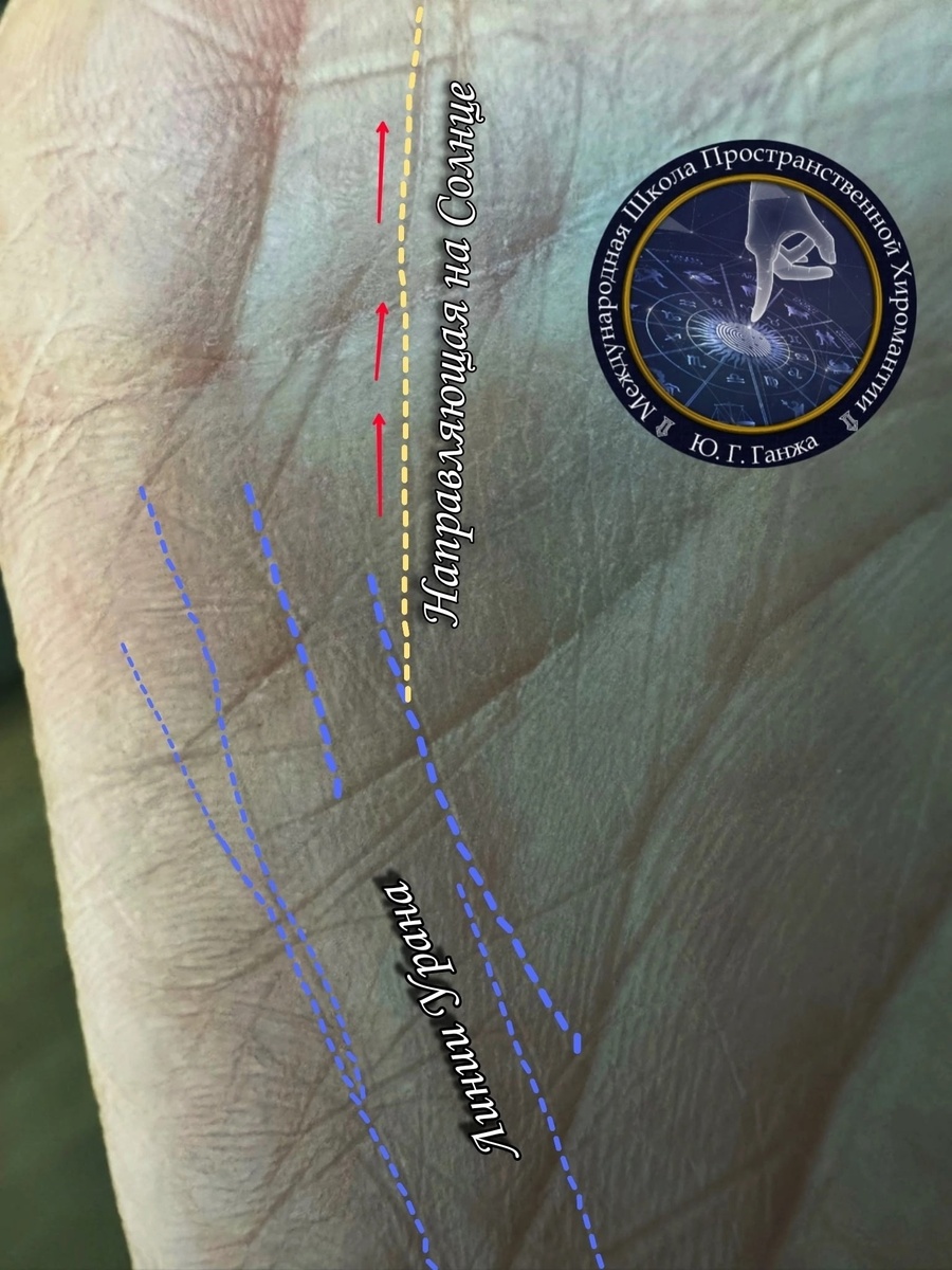 Когда от линий Урана, или вертикальных линий на холме Луны, идут направляющие на Солнце, то в возрасте их отхождения, человек может реализоваться в сфере эзотерики, быть успешным и популярным, испытывать радость и счастье от развития своего таланта.