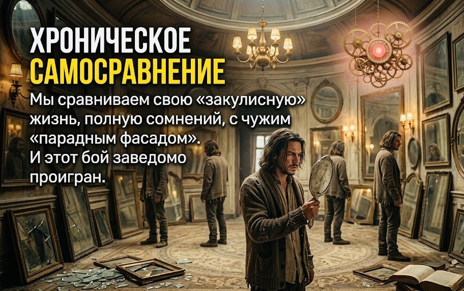 Мы сравниваем свою «закулисную» жизнь, полную сомнений и бытовых трудностей, с чужим «парадным фасадом». И этот бой заведомо проигран.