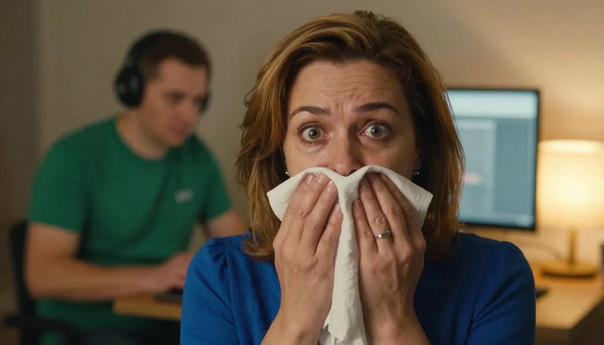 Потом в один вечер Евгений вышел на кухню за водой. Ноутбук остался открытым. Наушники — на подлокотнике. Экран светился. Я проходила мимо — и остановилась.