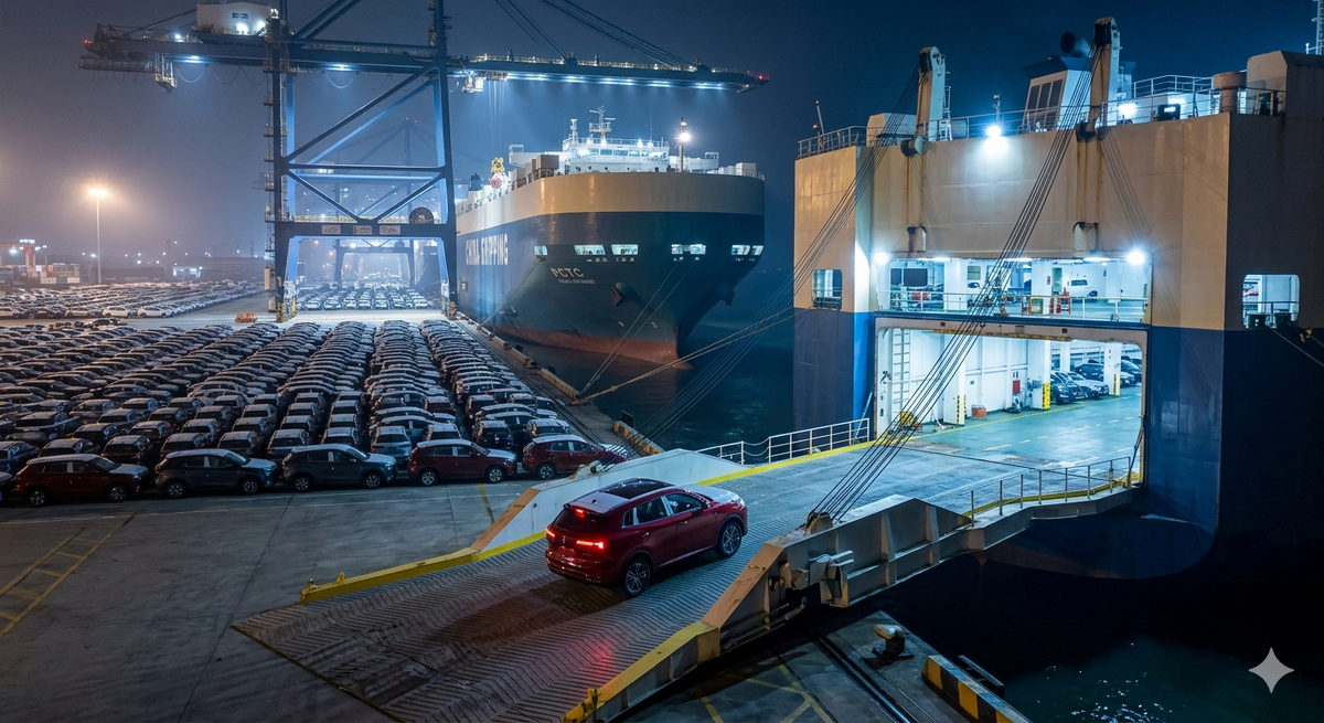 Смотрите на фото: это один из крупнейших портов Китая. Готовые машины грузятся на гигантские суда-ролкеры, которые затем идут в Европу и Африку. Для экспорта в Россию логистика сложная, долгая и дорогая (судном до Владивостока, затем поездом через всю страну). И всё это ложится на плечи покупателя.