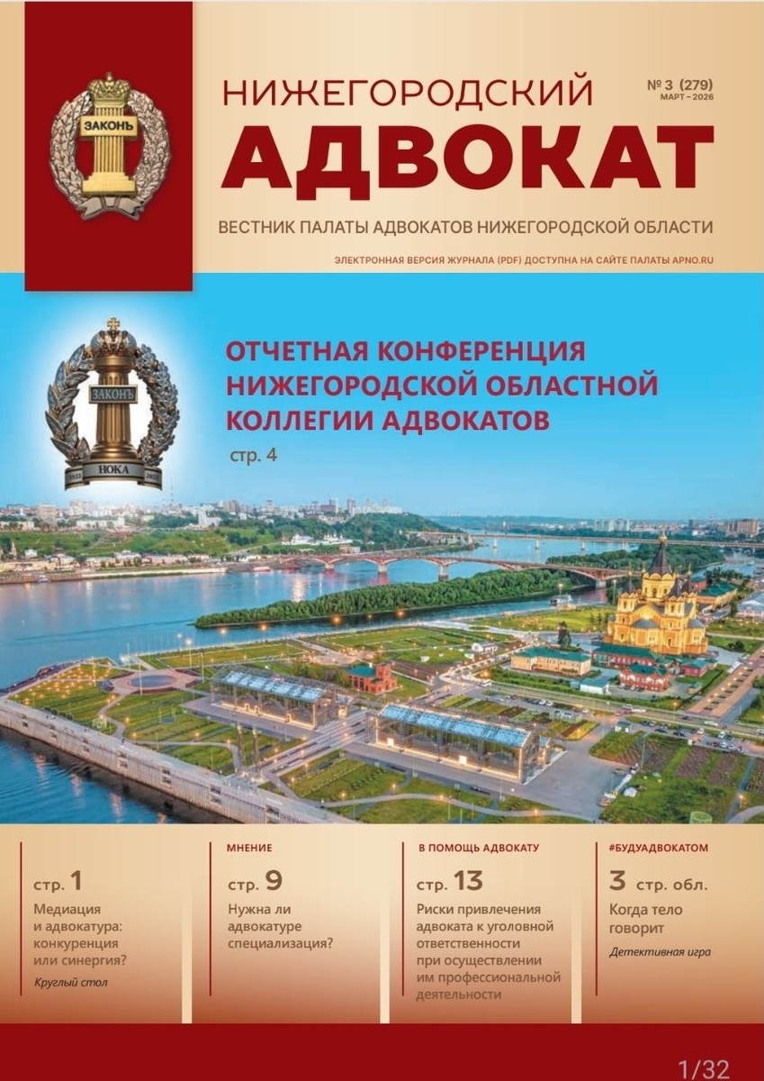 В журнале "Нижегородский адвокат" (N 3 за 2026 год, стр. 17-22) вышла в свет статья "Защита прав военнослужащих и членов их семей: анализ законодательства и практики правоприменения". Это результат взаимодействия с друзьями и коллегами из Нижегородской областной коллегии адвокатов, с которыми в настоящее время начинают складываться добрые и полезные взаимоотношения. Так, в январе мной для адвокатов коллегии была прочитана лекция по аналогичной тематике, ну и в результате чего поступило предложение об опубликовании материала, что и было успешно реализовано. Желаю нижегородским коллегам-адвокатам успешной и плодотворной деятельности и дальнейшего конструктивного сотрудничества! Ниже традиционно креплю текст номера журнала и статьи на страницах 17-22: