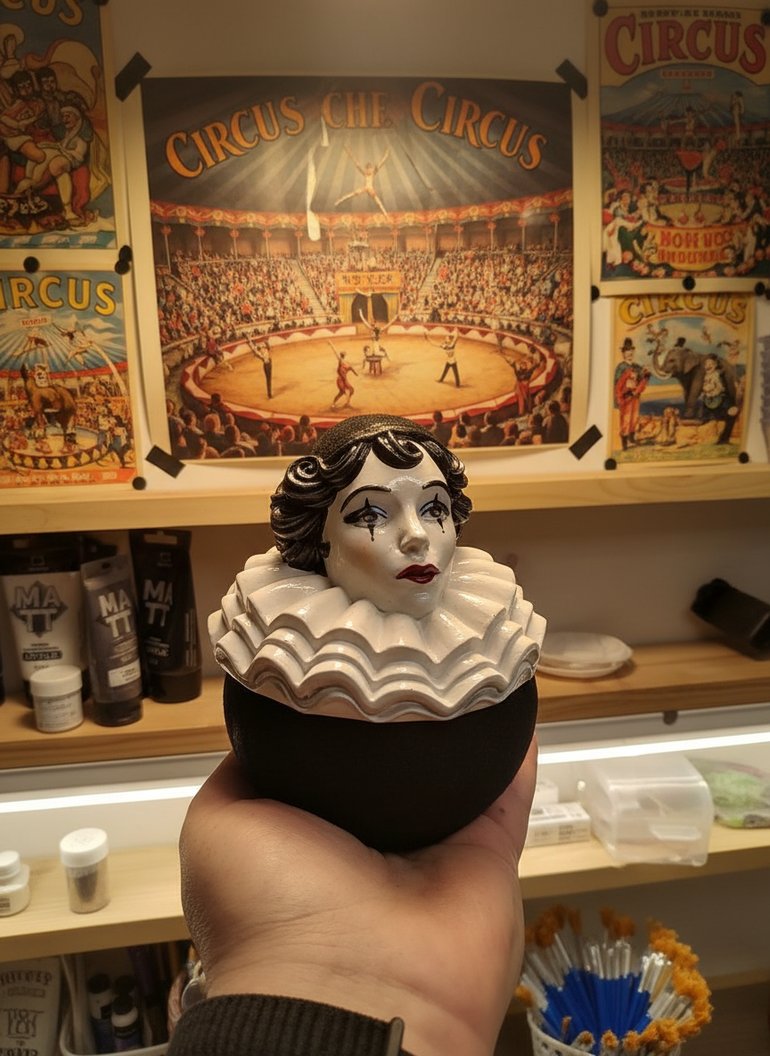 Да-да, это не просто декор — это шкатулка из гипса с лицом самого романтичного персонажа комедии дель арте!