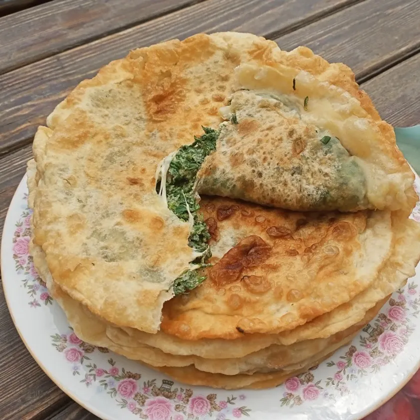 Люблю разные варианты лепёшек. Сейчас сезон крапивы, нажарила их с зеленью в растительном масле . Но, если добавить 2 ст л масла в тесто, то эти лепёшки можно приготовить на сухой сковороде. С начинкой тоже можно экспериментировать. Вместо творога взять, например, мясной паштет ,или фарш, или натертые вареные яйца добавить и т д. Интересные коллекции Зелень на зиму. От крапивы до черемши Супы. Разнообразие идей на обед Хинкали, подробные рецепты Идеи ужина 1. В миске замесить тесто из воды, муки и соли. Потом вымешивать его на столе минут 7-8. Завернуть в плёнку. Оставить так на столе, пока готовится начинка. 2. Для начинки зелень промыть, мелко порубить. Смешать с творогом и натёртым сыром, добавив соль, перец, и по желанию другие специи. 3. Разделить тесто на 12 частей. Каждую раскатывать в тонкую лепёшку до 1 мм. На одной лепёшке размазывать начинку, другой лепешкой её накрывать и защипывать края. Получится всего 6 шт лепёшек с начинкой. 4.Жарить лепешки в сковороде с хорошо разогр