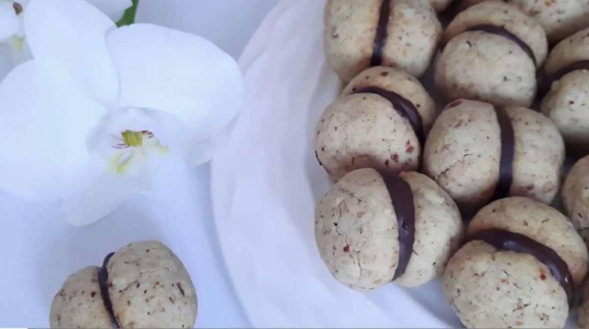 Это идеальный вариант для тех, кто не любит возиться с тестом часами. Минимум ингредиентов, максимум орехового вкуса и хруста. Половинки сами просятся в рот, а растопленный шоколад делает их похожими на маленькие пирожные.