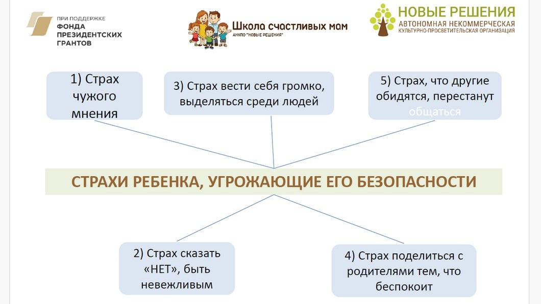 ? ⛔️На занятии мамы узнали о главных ошибках при воспитании безопасного поведения: 1. Пускать безопасность ребенка на самотек. 2. Манипуляции родителей. 3. Нарушение трех ключевых шагов для безопасности ребенка. 4. Воспитывать вредные для безопасности убеждения. 5. Не собирать «Карту безопасности» целиком. ➡️Особенно сильный отклик вызвало обсуждение манипуляций. Участники делились своим опытом: «Обычно задаю прямой вопрос "Вы пытаетесь сейчас манипулировать? " И детей важно научить этому». «Мои дети задают такие вопросы учителям, учителя злятся очень, не знают других методов воздействия». «Осознаю, что манипуляции в воспитании позволяют сократить время на переговоры с ребёнком. Но в перспективе очень опасны для самостоятельной жизни». 😥Подробно обсудили, какие страхи ребенка угрожают его безопасности. Узнали о конкретных практиках, которые помогут работать при разных страхах. Очень важен тут практикум «Мои сильные качества» - и для родителей, и для детей. Нужно помогать друг