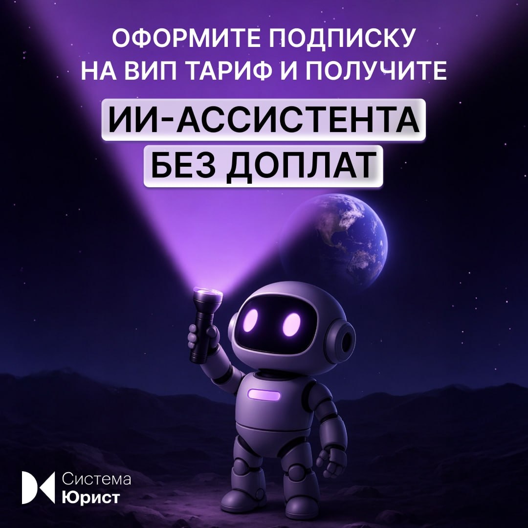 💡 В июле в Системе Юрист появится ИИ-ассистент, который за минуту: — Составит саммари с фабулой дела, аргументами сторон и мотивировкой суда — Кратко изложит суть статьи или пункта нормативного документа — Подготовит выводы по вашим судебным актам А еще с Системой Юрист вы сможете: ➡️ быстро принимать взвешенные решения с помощью правовых заключений с риск-анализом; ➡️ переложить часть рутинных задач на плечи экспертов Системы Юрист; ➡️ иметь под рукой библиотеку с самыми известными юридическими журналами и уникальными редакционными книгами. Успейте оформить подписку до повышения цены. Оставьте заявку по ссылке, менеджер перезвонит в течение дня ➡️ Он отправит вам коммерческое предложение и подробное описание разделов, сервисов и услуг, которые вы получите вместе с доступом к Системе Юрист.