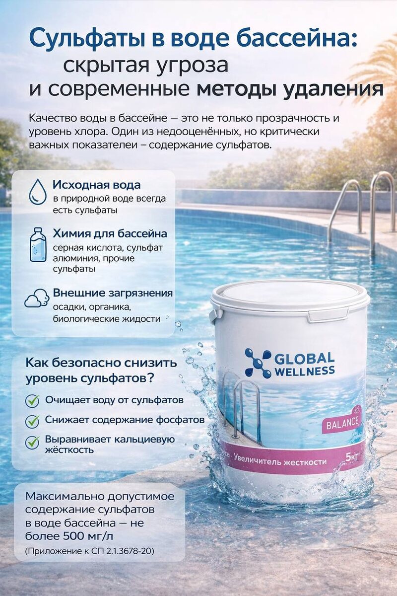 Сульфаты в воде бассейна: скрытая угроза и современные методы удаления