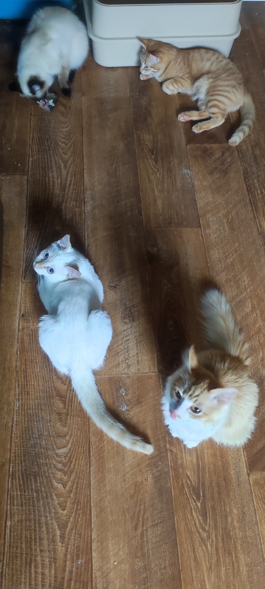 Здравствуйте, солнышки наши ясные. У нас дождик моросит и прохладно. Кузя по привычке вышел погулять, но замёрз и запросился домой. Вот сейчас дремлет, положив голову мне на колени. С другой стороны чистится Гоша. На спинке дивана довольная Буся. Она выпросила рыбку со вчерашней рыбалки и таскала её по всей кухне, под бдительным надзором котят. Те надеялись, что и им что-нибудь перепадёт. Но улов был скромным. Только на уху. Буся сильно просила, ей выделила. Остальных обделила. Поделюсь с ними вареной рыбкой. Сама бульон похлебаю. А это Лёлик. Жизнь удалась😄 Утром пришёл меня будить. Потянулся к лицу и слегка укусил за нос. Следом подтянулись Мурзик с Пухом. Мурзик застенчив. Большое достижение - наше с ним взаимное доверие. Сам подходит и мурлыкает. Заодно показывает, что не прочь поиграть. Я ныряю под одеяло, образуя домик. Потом тихонько выглядываю. Первым в домик забирается Пух. Этот добрейший котик ничуть не сомневается, что всё в порядке. А вот Мурзик с Беляшиком более остор