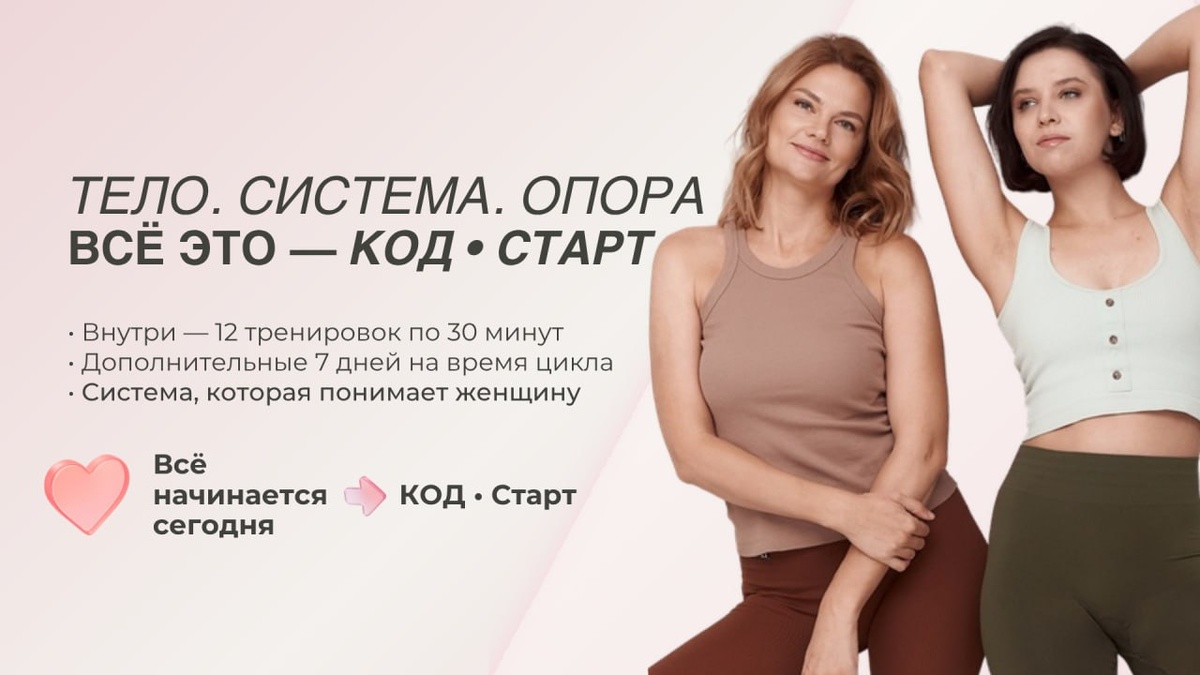 💎 Мы долго готовились к этому моменту! Проект ⏏️ переходит на систему Ступеней, и сегодня мы начинаем с самого важного — с фундамента! КОД • СТАРТ — это первый месяц вашего пути к красивому и здоровому телу! Это 12 занятий по 30 минут, которые изменят ваше самоощущение и отношения с телом 🔽 ЧТО ВНУТРИ КОД • СТАРТ 🔽 🫶 Линейность 3 тренировки в неделю. Вам не нужно выбирать — просто нажимайте play и выполняйте тренировку с Лилией Гуриной 🌟 Формула «30+7» Мы дарим дополнительную неделю доступа. Отдыхайте во время цикла без чувства вины и продолжайте тренировки как только ПМС отступит 🧘♀️ 🏄♀️ Умный фитнес Работа с осанкой, выпирающим животом, отеками и тазовым дном. Без изнурительных тренировок, в вашем темпе создаем красивую, подтянутую фигуру и сияющий взгляд в зеркале Для кого ступень КОД • СТАРТ? - для той, чей ресурс на нуле, а тело просит внимания - для той, кто ставит заботу о себе последней в списке дел - для той, кто хочет увидеть в зеркале подтянутое тело и сияющий
