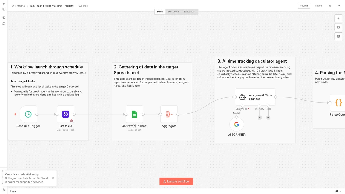 ⚡ Что делает: Автоматизация отслеживает время, затраченное на задачи, и собирает данные в Google Sheets. Она агрегирует информацию о времени, используя Dart, и создаёт отчёты, которые анализируются через Lm Chat Google Gemini для оценки производительности. 👥 Кому подойдёт: Проектным менеджерам и командам, занимающимся учётом рабочего времени. 💡 Пример: Команда разработчиков может автоматически собирать данные о часах работы над проектом и получать сводку о производительности каждую неделю. 🔗 Ноды: Agent, Aggregate, Dart, Google Sheets, Lm Chat Google Gemini 📊 Сложность: Средний #n8n #automation #nocode #aiagent #ai #aggregate ════════════════ 🎬 YouTube | ⚙️ Канал | 💬 Чат | 📮 Реклама