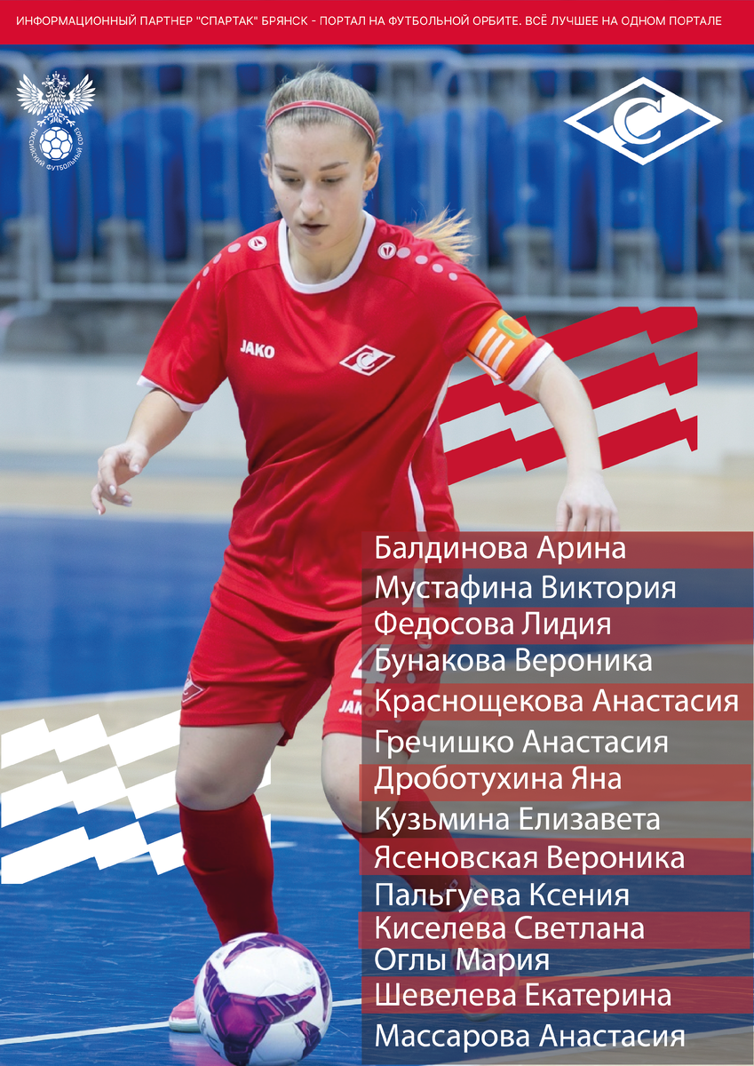 Дорогие друзья, сегодня наши девушки отправились на финальный этап чемпионата России по футзалу Первой лиги. 15 сильнейших команд страны сразятся за главный трофей Первой лиги. Вашему вниманию представляем состав красно-белых. 1. Балдинова Арина