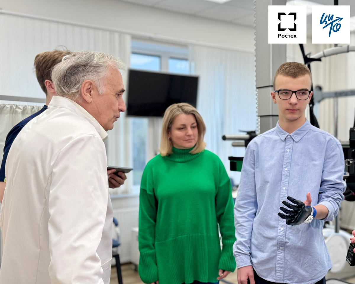Специалисты Центра инноваций в травматологии и ортопедии Госкорпорации Ростех создали и передали 13-летнему Алексею Бойко индивидуальный высокотехнологичный протез с микропроцессорным управлением, разработанный с учетом уникальной врожденной аномалии кисти. Вследствие врожденной патологии у мальчика отсутствуют три пальца на левой руке, часть ладони, ногтевая пластина на имеющихся пальцах, дистальный сустав мизинца. Подобные изменения исключает использование обычного протеза, так как у пациента недостаточно площади ладони и функционирующих мышц для управления обычными датчиками. Протезисты ЦИТО предложили нестандартное решение: четырехпалый протез, в котором сохранившийся мизинец пациента интегрирован внутрь гильзы и выполняет роль активного элемента управления. Внутри компактного корпуса специалистам удалось разместить все комплектующие: микропроцессор, два аккумулятора, зарядный блок, вибродатчик, систему проводов и два датчика управления. Такой подход позволил адаптировать устройст