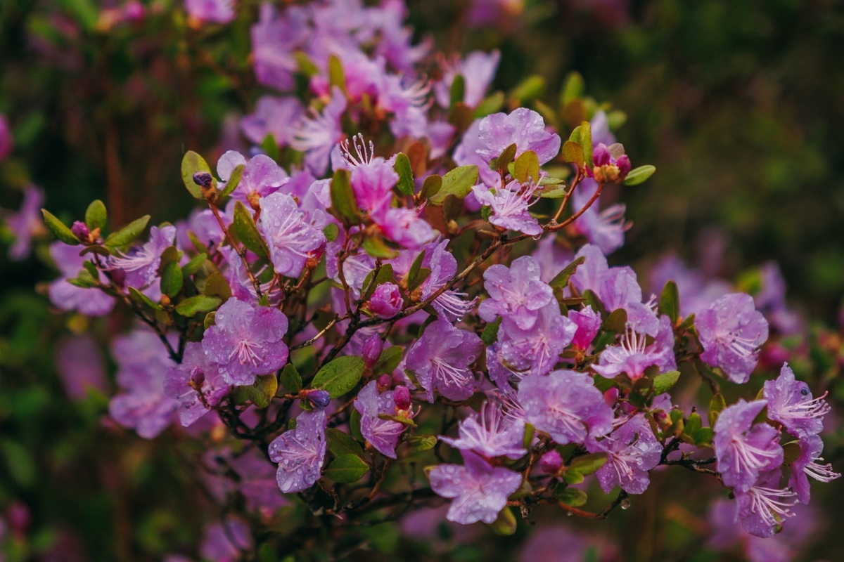 Всего на 10–14 дней горные склоны покрываются лиловыми оттенками, и привычный пейзаж меняется почти мгновенно. Это маральник — редкий кустарник, занесённый в Красную книгу. Природа будто становится мягче и появляется ощущение настоящей весны. Ради этого момента сюда приезжают туристы со всего мира — увидеть, как суровые горы оживают и покрываются цветами. Момент, который длится всего несколько недель, но запоминается надолго.