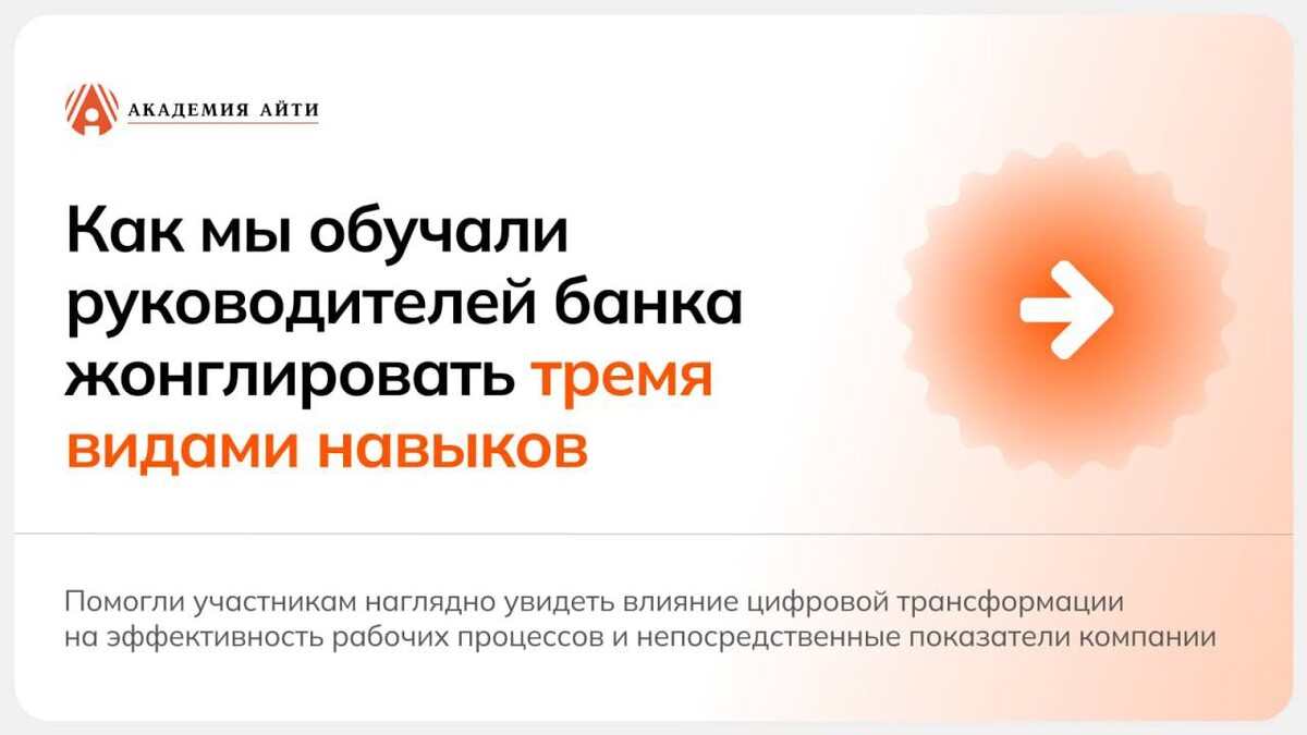 Для руководителей крупного банка с государственным участием Академия АйТи провела программу по управлению бизнес-процессами и цифровой трансформации. Участники разбирали реальные процессы банка, моделировали принятие решений и работали с показателями эффективности. В карточках выше — как была устроена программа и какие результаты получил заказчик. МЫ В МАХ #ИИ #AI #управлениепроектами