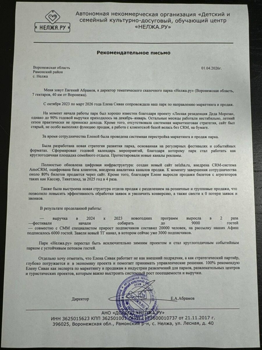ру. Часть 2. Как мы перестроили маркетинг парка Этот проект мы развивали совместно с компанией Entens Group @AlexanderBeniaminov @Alex_Prosandeev начали конечно с цифр и статистик, внедрили операционный учет и стратегическое планирование. Считаю что финансовая гигиена - это первое с чего нужно начинать! После уже выстроили маркетинговую инфраструктуру. Первое — сделали новый сайт https://nelzha.ru На сегодня по словам бухгалтера 90% продаж билетов происходит именно через сайт и в формате пред продажи. Второе — оцифровала все звонки и заявки До начала нашей работы CRM -это были бумажные ежедневники менеджеров. Мы внедрили AmoCRM с нуля и оцифровали всю базу. Это позволило: — не терять заявки — Понимать их реальное количество, а не со слов менеджеров навскидку — запускать постоянные рассылки по базе — видеть аналитику продаж в реальном времени и все конверсии: как по каналам так и по менеджерам Третье - отстроила работу каналов трафика Основной поток гостей стали давать: — тарге
