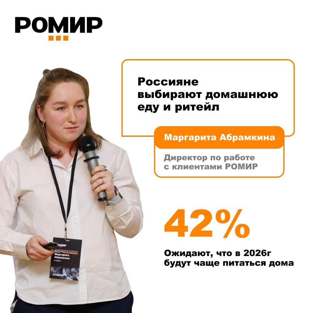 Рынок общественного питания сталкивается с конкуренцией со стороны домашней еды и готовых решений из ритейла. Домашняя еда сохраняет статус базового сценария потребления, тогда как развитие сегмента готовых блюд оказывает дополнительное давление на рынок. При высокой доле повторных покупок (более 80%) растут средний чек и частота потребления. «Потребитель сегодня выстраивает более рациональную модель поведения: он не отказывается от питания вне дома, но делает его частью более широкой системы выбора», – отмечает директор по работе с клиентами РОМИР Маргарита Абрамкина. Эти и другие данные были представлены на научно-практической конференции РОМИР «Мир человека». Узнать больше можно на сайте в разделе «Готовая аналитика». Подписывайтесь на РОМИР Читайте нас в MAX | Дзен |ВКонтакте Думайте вместе с Андреем Милёхиным