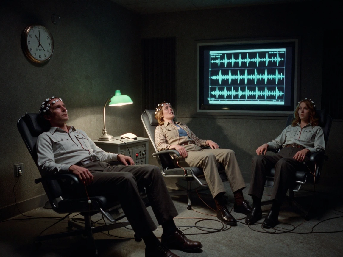 На седьмой час эксперимента аппаратура начала сбоить. Датчики показывали невозможные значения: мозговая активность участников одновременно достигала уровней, характерных для глубокого сна и крайнего возбуждения. Запись с камер наблюдения позже показала, что все трое синхронно повернули головы в одну сторону, словно прислушиваясь к чему‑то за стеной. В этот момент главный исследователь, доктор Карлсон, отдал приказ остановить эксперимент.