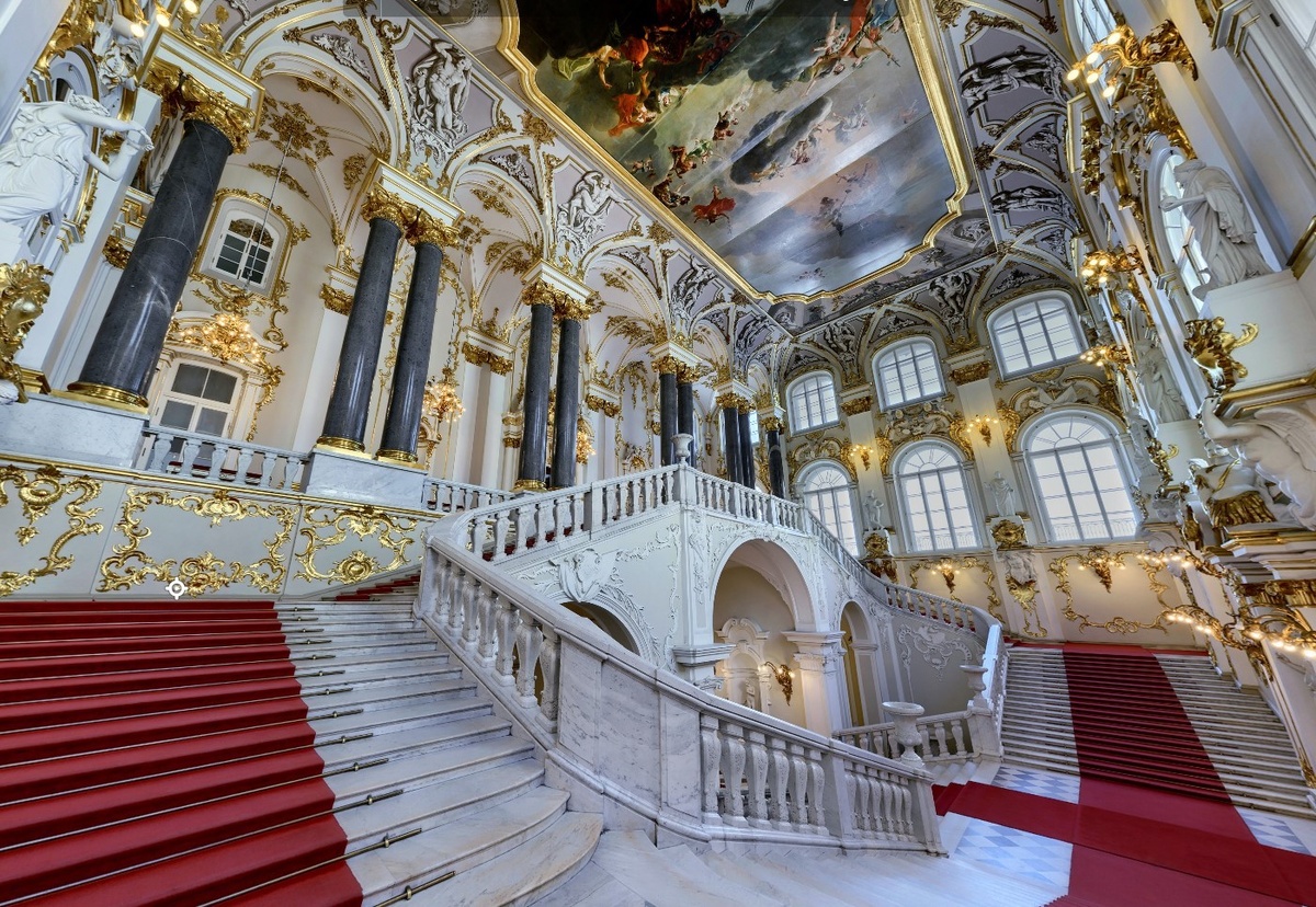 В Эрмитаже огромные зеркала в массивных рамах с резьбой и позолотой не только украшали интерьер, но и делали пространство визуально больше.