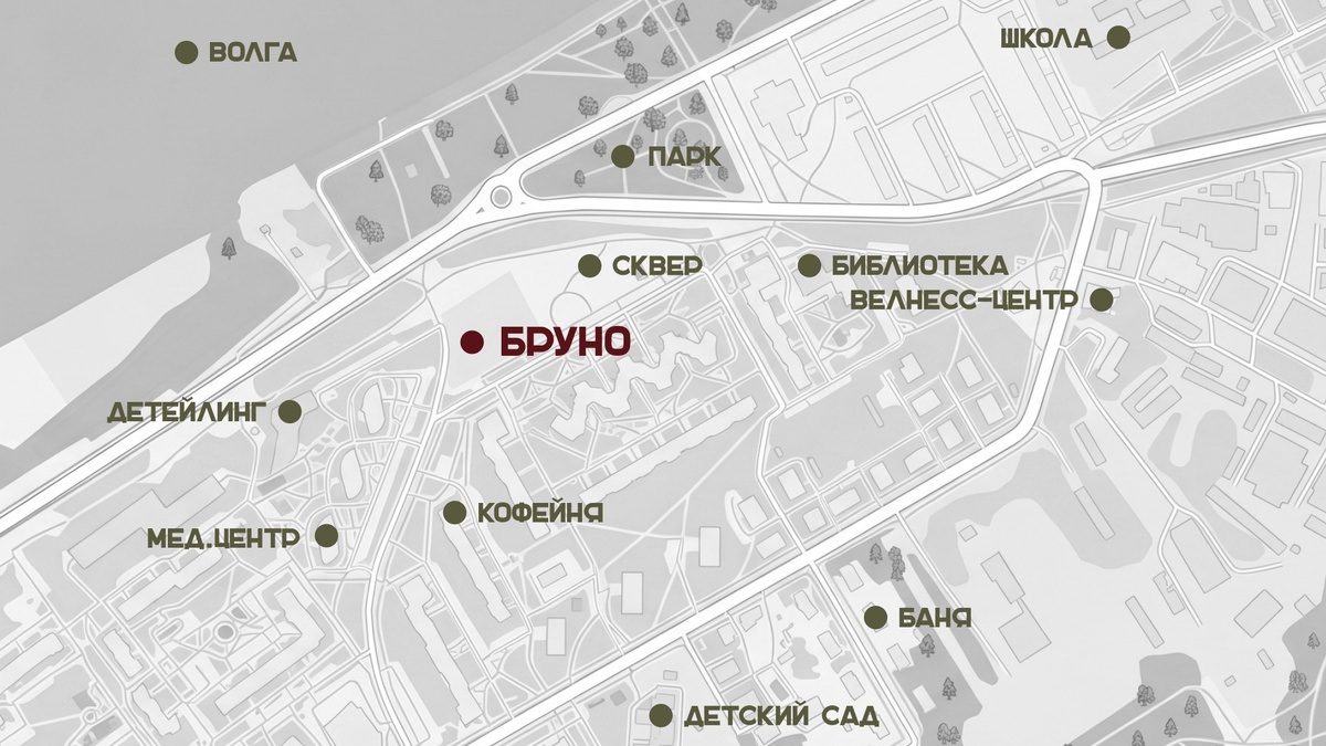 ЖК БРУНО расположен в Дубне, Московская область, на улице Понтекорво