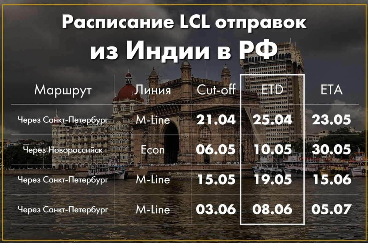 Также в мае мы продолжим отправку сборных контейнеров из Индии в Новороссийск.