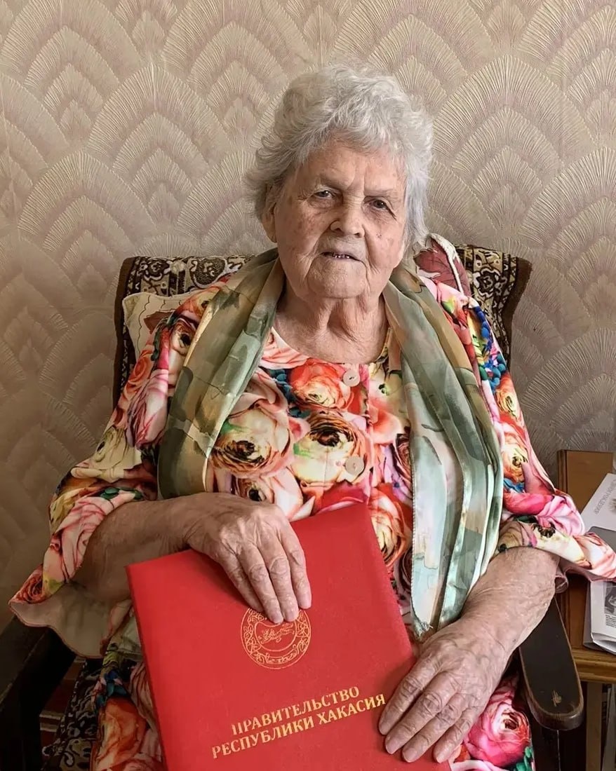 Арина Ивановна родилась в Алтайском крае. Ее воспитанием занималась тетя, которая забрала ее в Кемерово, так как мама рано умерла. Когда началась война, как и все дети того времени, она пошла работать на военный завод, где изготавливали патроны. Работа была опасная и тяжелая. Помимо этого, приходилось трудиться и на полях. Позже ее взяли ученицей на швейную фабрику, где она проработала до окончания войны. После войны Арина Ивановна переехала в Черногорск. В 20 лет вышла замуж за Помазкина Александра Александровича, участника ВОВ. До самой пенсии трудилась в ателье швеей. Вместе с мужем они вырастили 2 детей. Сейчас у Арины Ивановны 4 внуков и 2 правнучки. Она является тружеником тыла и ветераном труда, имеет множественные награды. Позвонил Арине Ивановне, поздравил её с днём рождения, пожелал крепкого здоровья и долгих лет жизни. По моему поручению имениннице передали поздравительные адреса от Президента России В. В. Путина и подарок от правительства Хакасии. ▫️ Мой канал в Telegram