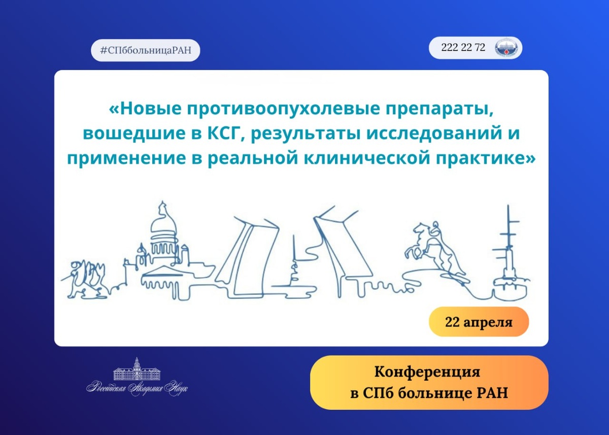 22 апреля 2026 года на базе СПб больницы РАН состоится ежегодная научно-практическая конференция «Новые противоопухолевые препараты
