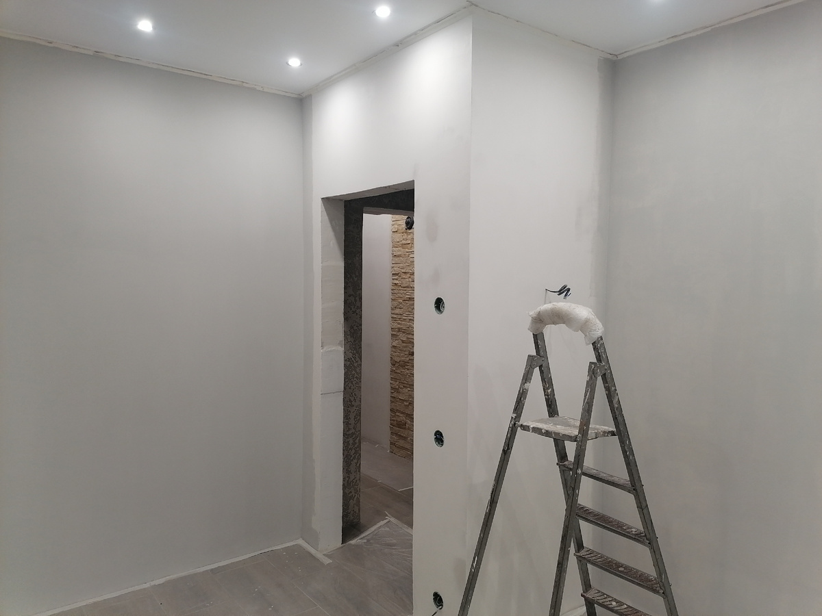 Закончил финишную отделку стен в доме. Критериями выбора покрытия были условия: супермоющаяся поверхность, устойчивость к легким механическим повреждениям (царапинам), невысокая стоимость. Классические варианты не рассматривали. Просто покраска стен – для интерьеров в стиле минимализм. Да, это современный тренд. Но считаю простую покраску переоцененной. Под нее нужно идеально выводить стены, шпаклевать со стеклохолстом, а терять такие стены вид могут так же быстро, как и обои. С обоями тоже все ненадолго. Со временем расходятся по швам и нужно местами их подклеивать. И через 7-10 лет практически любые обои нужно все-равно переклеивать. Гораздо практичнее и долговечнее в этом плане декоративная штукатурка. Этим вариантом отделал первый этаж (о нем расскажу как-нибудь отдельно). А в спальных комнатах – сделал покрытие из декоративной износостойкой песчаной краски. И это покрытие вышло по цене дешевле, чем обои. Показываю, как происходит нанесение на примере трех комнат и что для этого ну