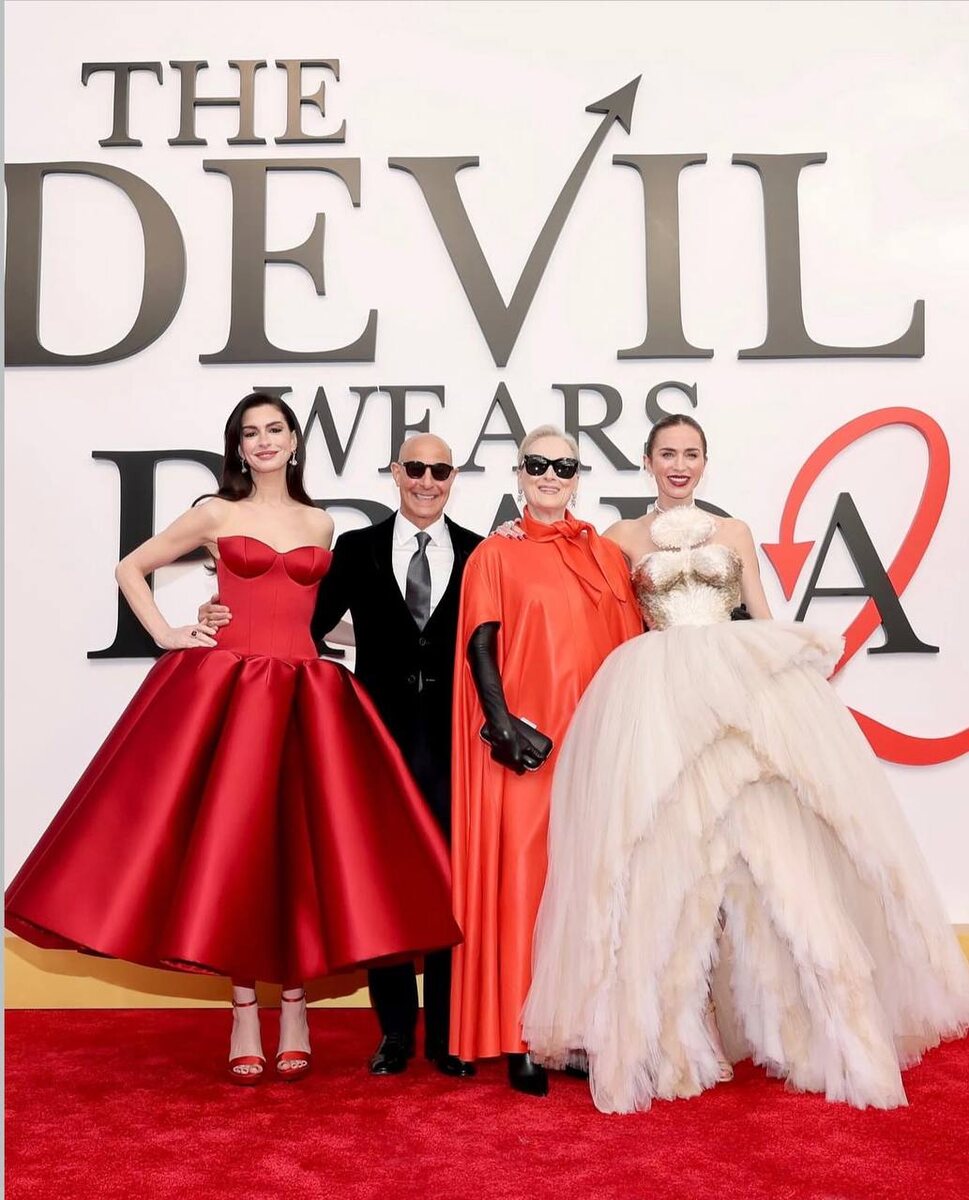 Начинаем утро с фото с нью-йоркской премьеры второй части «Дьявол носит Prada». На ней собрался вместе весь каст.