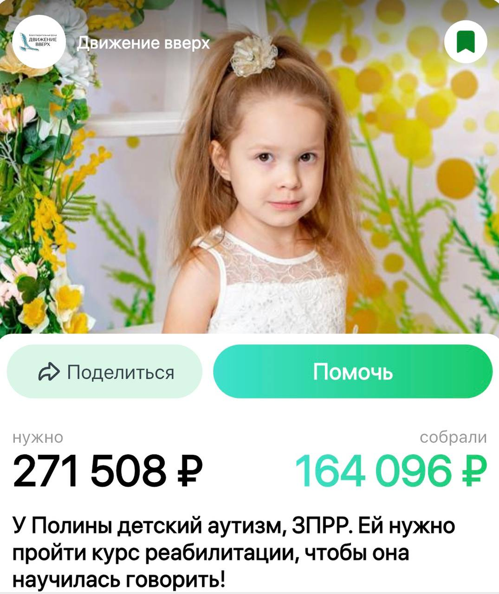 Ваша помощь очень нужна подопечным нашего фонда «Движение вверх» – Полине Шульгиной и Аюру Цырендоржиеву. Сбор средств осуществляется в приложении Tooba. Полина появилась на свет вовремя, абсолютно здоровой. До полутора лет она развивалась совершенно нормально. Но потом случился откат: у Полины пропал указательный жест, она перестала смотреть в глаза и общаться. В 3 года девочке официально поставили диагноз «детский аутизм» и оформили инвалидность. Полине уже 6 лет. Занятия со специалистами и курсы реабилитации дают свои результаты. Вернулся указательный жест, девочка стала откликаться, когда слышит свое имя, лучше понимает, что происходит вокруг, появились первые слоги. Для того, чтобы Полина научилась говорить и общаться, ей необходимы постоянные курсы реабилитации. Давайте все вместе поможем Полине сказать свои первые полноценные слова! Помочь Полине можно по ссылке. Аюр родился на 32-й неделе, весом всего 1737 граммов. Из-за кровоизлияния в мозг пострадали отделы, отвечающие за дв