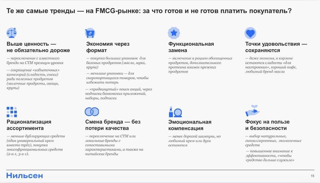 Я, как и многие маркетологи, считаю, что рынок товаров быстрого спроса является отличным целевым предиктором для более дорогостоящих и долгосрочных приобретений. Именно поэтому я всегда интересуюсь какие есть тренды в секторе FMCG, как они меняются и как потенциально могут повлиять на потребительские запросы при покупке квартир. ✅ Визуалом к посту прикладываю основные тренды начала этого года. Из любопытного на мой взгляд: 1. Рационализация ассортимента и комбинирование внутри одного продукта множества качеств. Привет многофункциональные комбинированные общественные пространства в девелопменте. 2. Эмоциональная компенсация, как доказательство того, что от любимых дофаминовых вещей не будут отказываться даже в самые кризисные времена. Привет арх-красивые фасады и статусные брендинги. 3. Экономия через формат, как пример того, что важно иметь реальную возможность использовать купленное по максимуму. Без излишеств. Привет стратегия продуктовой достаточности в девелопменте. Посмотрит