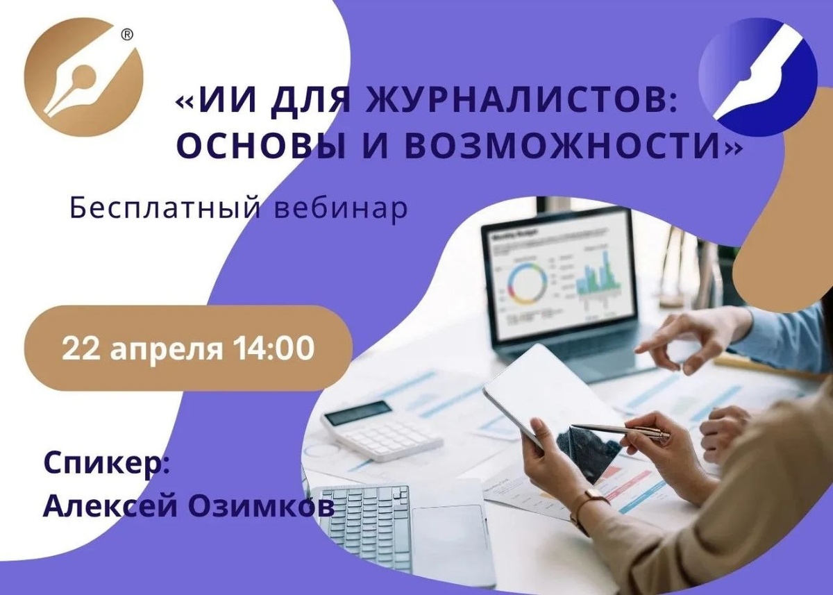 На базе учебного центра Союза журналистов России стартует традиционная серия бесплатных вебинаров для журналистов, представителей СМИ и сотрудников пресс-служб. В этом году обучение посвящено работе с искусственным интеллектом. Спикер – Алексей Озимков, основатель цифрового агентства 7LOGIC, член Союза журналистов Подмосковья, учредитель интернет-издания «Мир Капитанов». На вебинаре 22 апреля «ИИ для журналистов: основы и возможности» вы узнаете: что такое генеративный ИИ и как он работает; основные модели и их возможности; новая поисковая выдача: как ИИ меняет поиск информации; этика использования ИИ в медиа; что ИИ может и чего не может. Начало занятия – в 14.00 (мск.). Предварительная регистрация не нужна. Ссылка для подключения на вебинар 22 апреля: https://pruffme.com/landing/u5059781/tmp1776071486 Следующие вебинары: 28 апреля – «Техники работы с нейросетями»; 14 мая – «ИИ в редакции: от идеи до публикации». Союз журналистов Подмосковья в МАХ