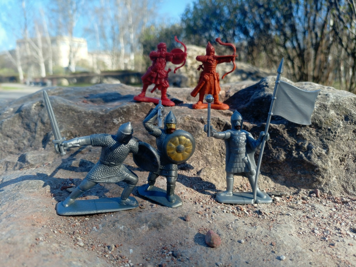 Ave любители солдатиков! Вот и новый выпуск данной рубрики подоспел к финалу апреля. Красивое число 130 в заголовке получил материал Богуслава Рыбина. Фотографии - Богуслав Рыбин. Приветствую всех. У нас на обзоре сегодня подарки от Сергея Тарасова, за что ему огромное спасибо. Первым идёт лучник из набора «Кочевники» от «Инженера Басевича», он стреляет прямо,видимо противник находится близко и это последний залп сложносоставного лука перед рукопашкой. Или пытается достать Святослава для своего хана Кури. На голове у него шлём из нескольких пластин с наушами, бармицей служит украшенная кожа. На нем длинный халат до колен, подол, края,рукава украшенны ромбическим узором. На поясе висят колчан со стрелами, кинжал в ножнах, налуч. За ремнём заткнут небольшой топорик. На ногах высокие сапоги. Второй это лучник из набора «Сарацины» от «Инженера Басевича», который стреляет из сложносоставного лука навесом на среднюю дистанцию. Или пытается выбить из седла крестоносца скачущего на него с сабл