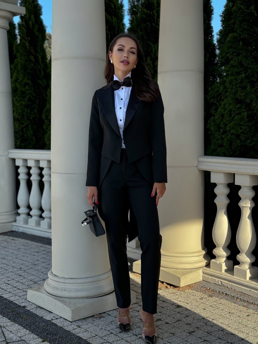 🖤🤍🖤 Женский смокинг-фрак в черном цвете - это продуманный вечерний костюм-тройка с брюками, который легко адаптируется под любое событие