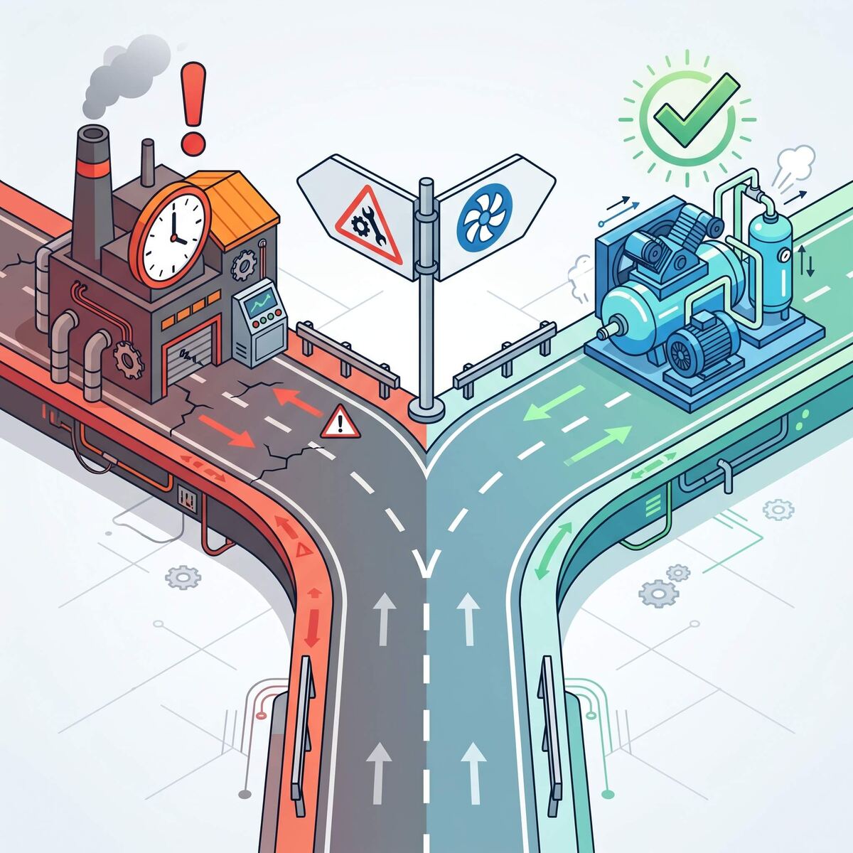 - Стоимость внепланового простоя: Если восстановленный вентилятор выйдет из строя повторно через короткое время, компрессор Atlas Copco GA45FF уйдет в аварийную остановку по перегреву (защита срабатывает при температуре масла 105–110°C). Финансовые потери от простоя производственной линии или цеха во время повторного ремонта могут в десятки раз превышать цену новой детали.