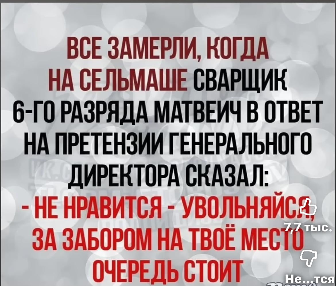 Я 10 лет пахал на небольшом предприятии: электрик, КИП, монтажник, гидравлика, вентиляция, АСУ ТП, конструктор, компрессорщик, внедрил им СКАДА систему... А директор взял и срезал мне зарплату с 70 до 45. Я ему сказал: 150 т.р З/П и я дальше работаю. Тот упёрся и сказал: Так ты же это всё делаешь в течение смены и не напрягаешься, а производительность твоя не поднимется, если даже тебе подниму зарплату. Ну я сказал: тогда я просто электрик и числюсь электриком. А всё остальное хозяйство отдавайте на аутсорс, но 45 — это вообще не какая зарплата, хватит только на хлеб без масла, — и уволился. Но через месяц дирик сам прибежал, а я ему в лицо: "Ида-ка ты отсюда - я через 2 недели нашёл новую работу притом с белой ЗП а не в конвертах, и ЗП мне дали в 2 раза больше, чем я просил у тебя. " Ответ директора поставил точку на этой гнилой конторе после слов, что моя производительность не повысится, если он мне поднимет зарплату. Сколько лет прошло, а до сих пор обида гложет: сколько трудов