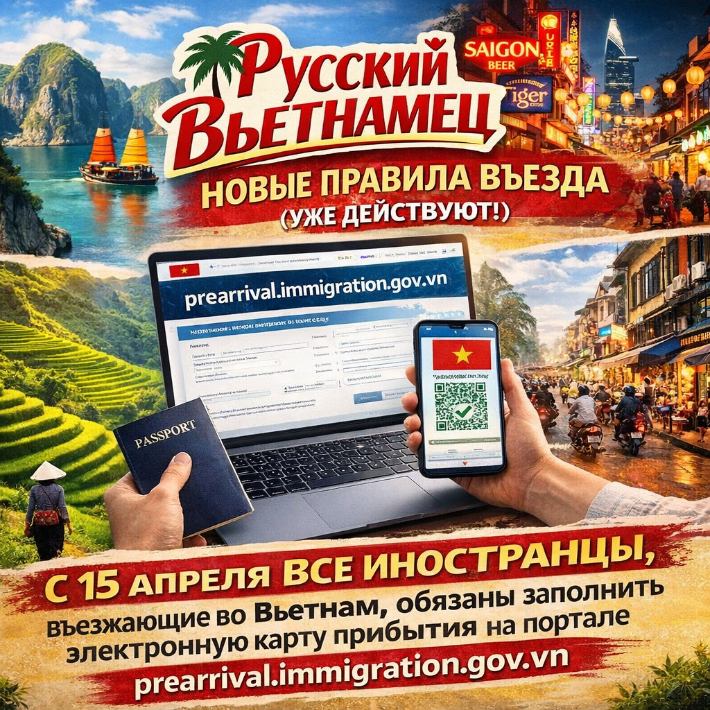 С 15 апреля все иностранцы, въезжающие во Вьетнам, обязаны заполнить электронную карту прибытия на портале prearrival.immigration.gov.vn .
