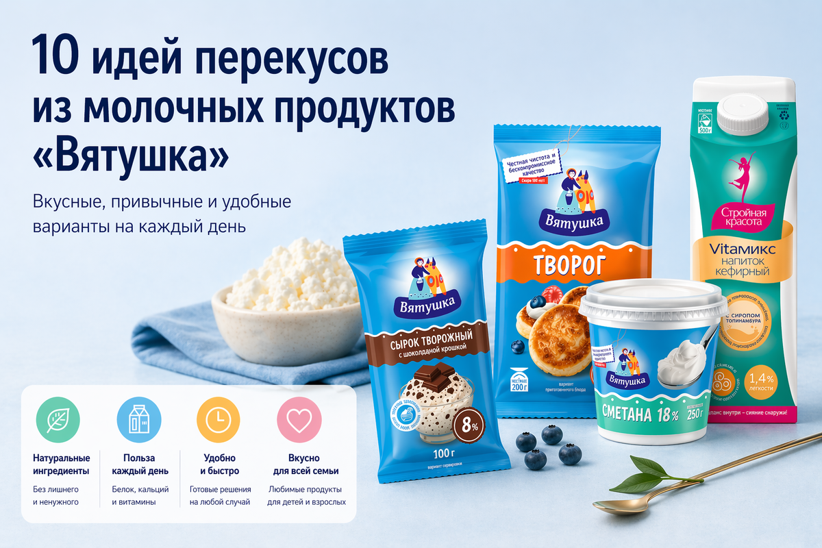 Собрали 10 идей из ассортимента «Вятушки», которые могут стать хорошей основой для ежедневных перекусов.