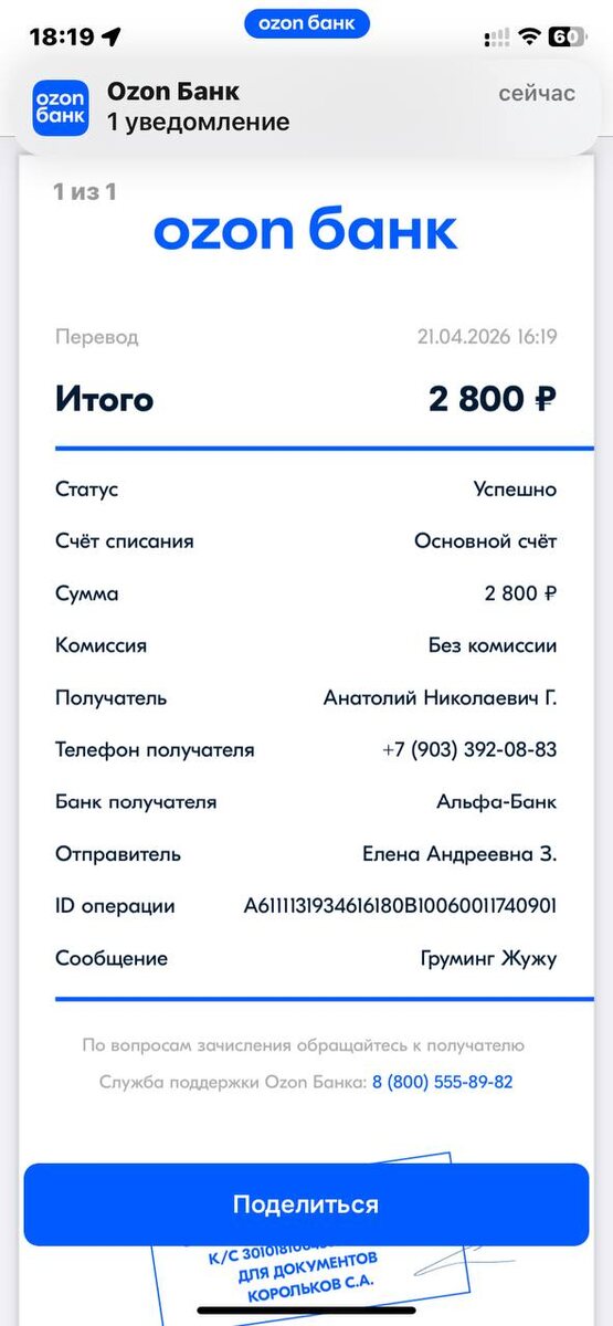 Пришла помощь от Полины из Самары 💖💖💖 Оплатили груминг Жужи