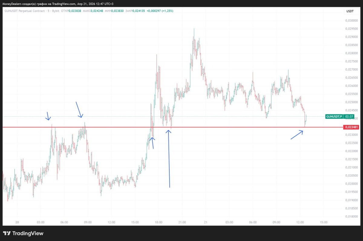 ? Тут есть два варианта: первый - это не входить в сделку, если не уверены, нет чёткого понимания, где конкретно провести уровень. Для неопытных трейдеров это очень даже хороший вариант проверить свой анализ на истории, но остаться при своих деньгах. Продвинутый вариант определение уровня, это не является аксиомой, это лишь мои заметки и логическое объяснение этому такое: взять уровень, обозначенный самой длиной стрелкой, так как именно с этой цены произошло обновление максимумов, и именно на этой цене будет приниматься решение, куда инструмент пойдёт. Второй вариант хорошо работает и на Форексе, это брать уровень, который последний раз подтверждался, то есть самая правая стрелочка, тут мы видим остановку, поэтому он может при следующем подходе считаться за уровень. В любом случае, это не будет идеальной сделкой из-за этих хвостов. Поэтому лучше всё-таки пропустить сделку.
