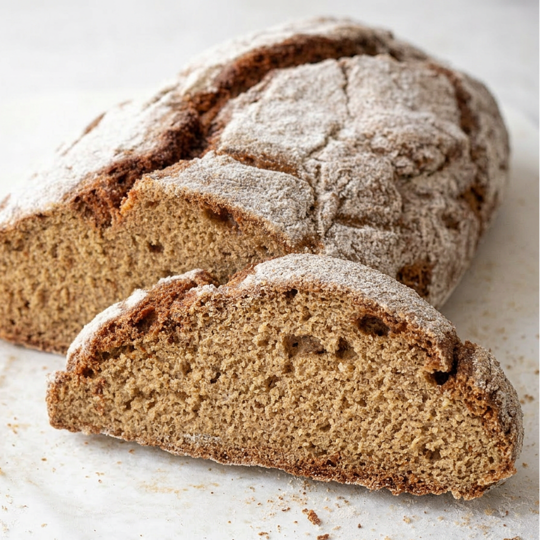 Приготовление: 1️⃣ Слегка подогрейте кефир (он должен быть тёплым, не горячим). 2️⃣ В миске смешайте все сухие ингредиенты. Добавьте кефир и перемешайте лопаткой — тесто получится мягким и липким. 3️⃣ Щедро присыпьте рабочую поверхность мукой, выложите тесто и аккуратно подбирайте его от краёв к центру. При необходимости добавьте немного муки. Сформируйте батон. 4️⃣ Осторожно перенесите заготовку на противень (удобнее через доску или с помощью скребка). 5️⃣ Выпекайте в заранее разогретой до 210–220°C духовке 40–45 минут. 6️⃣ Готовый хлеб заверните в полотенце и дайте полностью остыть. 💛Если понравился рецепт - поставьте лайк
