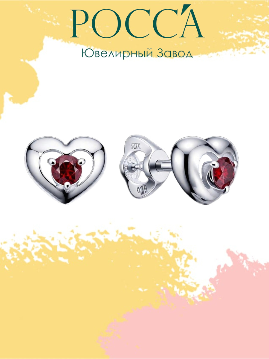 Маленькое сердце, пылающее гранатовым огнём. Ювелирный завод «РОСС’А» представляет серьги-гвоздики «Сердце» — украшение, в котором форма говорит о чувствах, а натуральный камень добавляет глубины. В этой модели продумано всё: от дизайна до винтового замка, исключающего потерю. Рассказываем подробности. Главная деталь — сам пусет выполнен в форме сердца. В его центре расположена вставка из натурального граната (чистота — 1, высший балл). Вес камня — 0,285 карата, диаметр — 3 мм. Огранка — круглая бриллиантовая, что даёт яркую игру света даже на таком миниатюрном объёме. Гранат традиционно считается камнем страсти, энергии и верности. В сочетании с формой сердца он превращает серьги в послание: «мои чувства настоящие и глубокие». Основа украшения — серебро 925 пробы. Это классический ювелирный сплав, проверенный временем. Вся поверхность покрыта белым родием (металл платиновой группы). Что это даёт покупателю: Серьги сохранят товарный вид долгие годы даже при ежедневной носке. Одна из