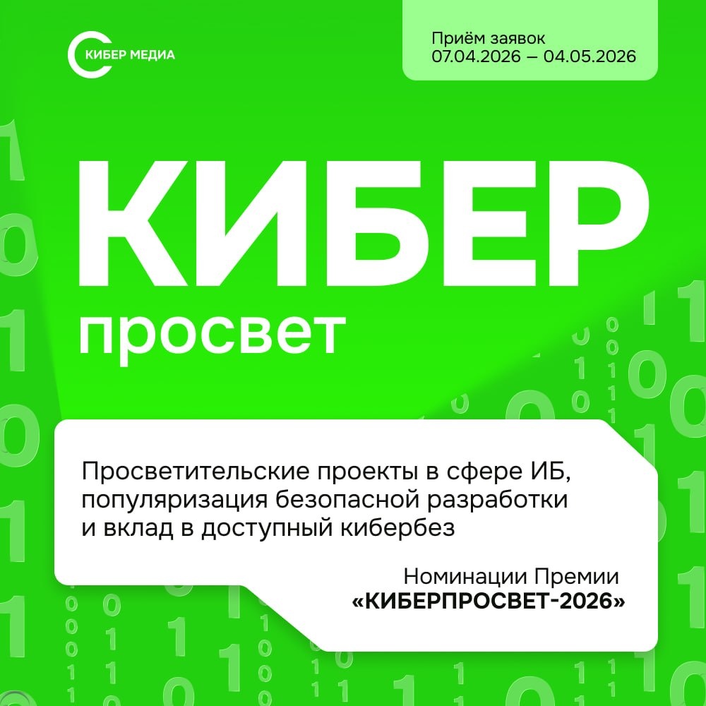 🔥 Представляем состав жюри юбилейной премии «Киберпросвет-2026» В этом году оценивать проекты в области популяризации информационной безопасности будут и эксперты индустрии, и номинанты премии прошлых лет: ➖ Николай Нашивочников, техдиректор компании «Газинформсервис» ➖ Александр Сухомлин, директор департамента архитектуры ИБ компании «Ростелеком» ➖ Екатерина Вайц, замдиректора РУНЦ «Безопасность» МГТУ им. Н.Э. Баумана ➖ и многие другие! ➡️ Напоминаем, что участие бесплатное. Сбор заявок до 4 мая. Итоги 12 мая. Заявки оставляйте в форме. 😎 Здесь о кибербезе
