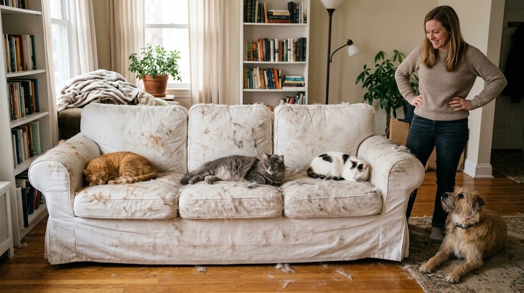 Получается, не мебель красит дом, а те, кто в нём живёт. Даже если они линяют круглый год. 🐾