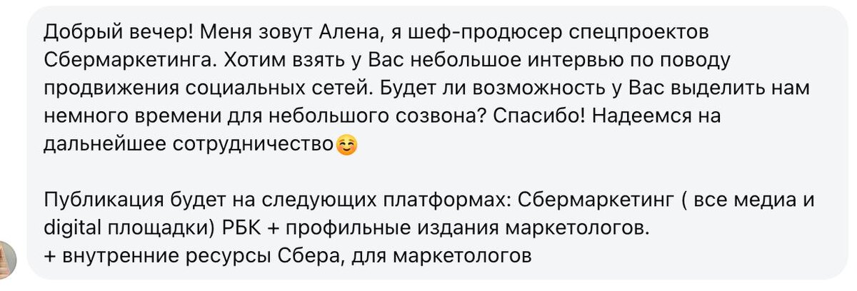 Хотят взять интервью про продвижение в соцсетях для СБЕРа, РБК и т.п.